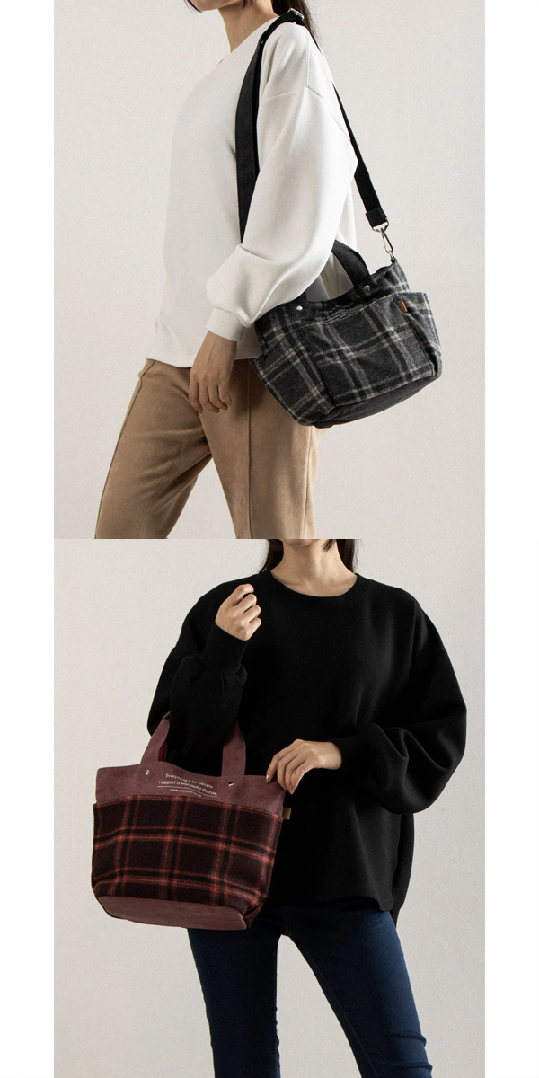 チェック柄×帆布 手提げバッグ 2WAY 全4カラー