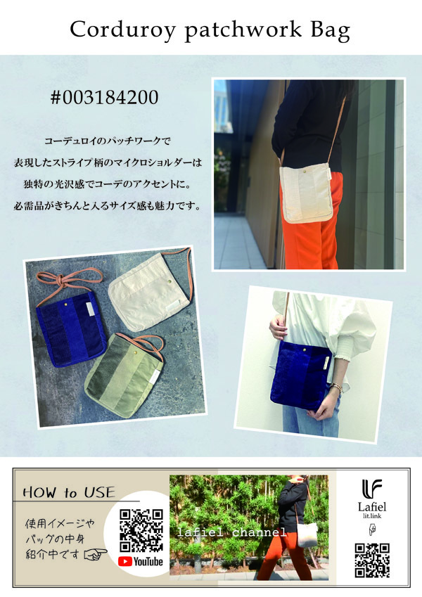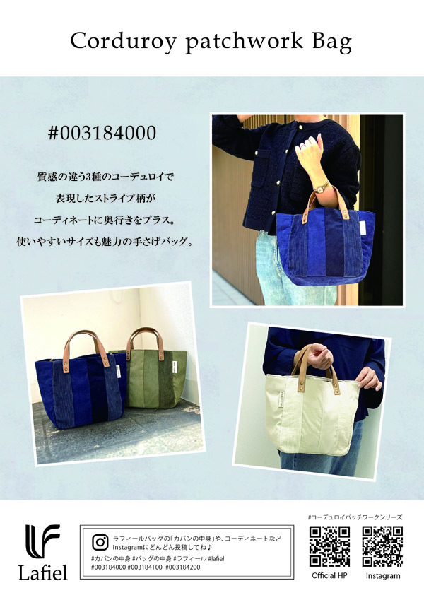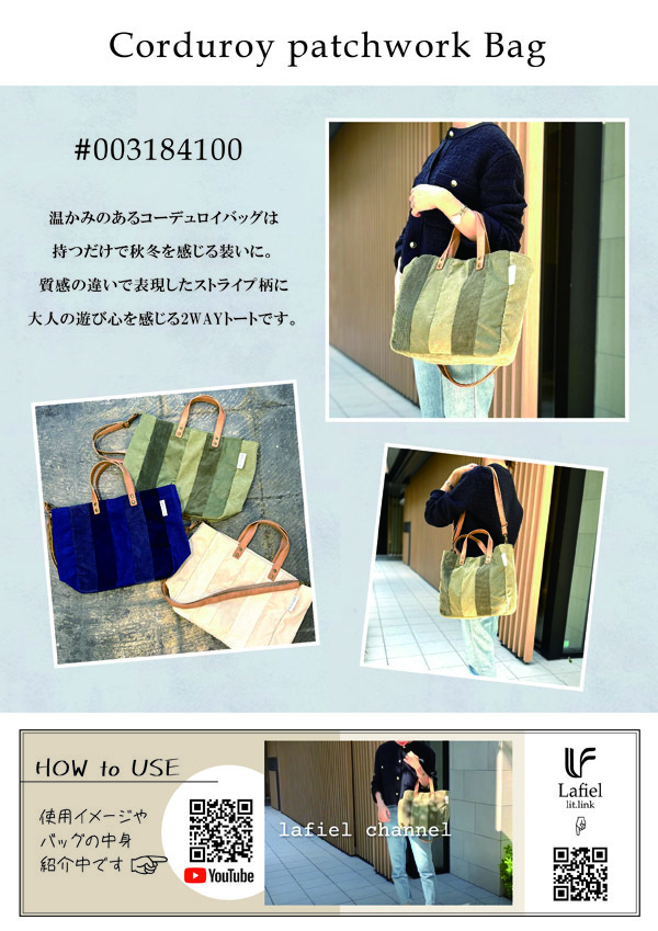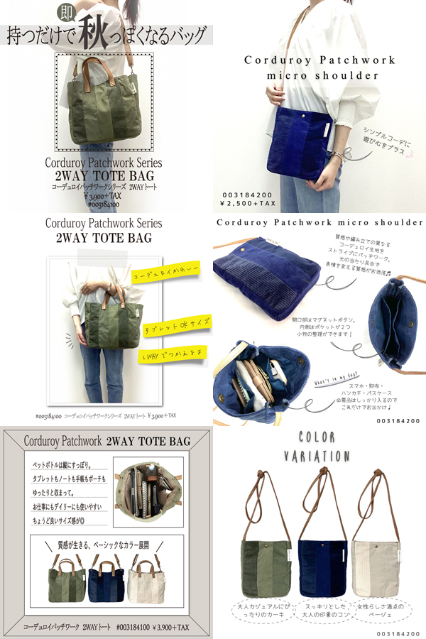 畝幅違いのコーデュロイをパッチワーク、質感の違いで表現したストライプがお洒落♪