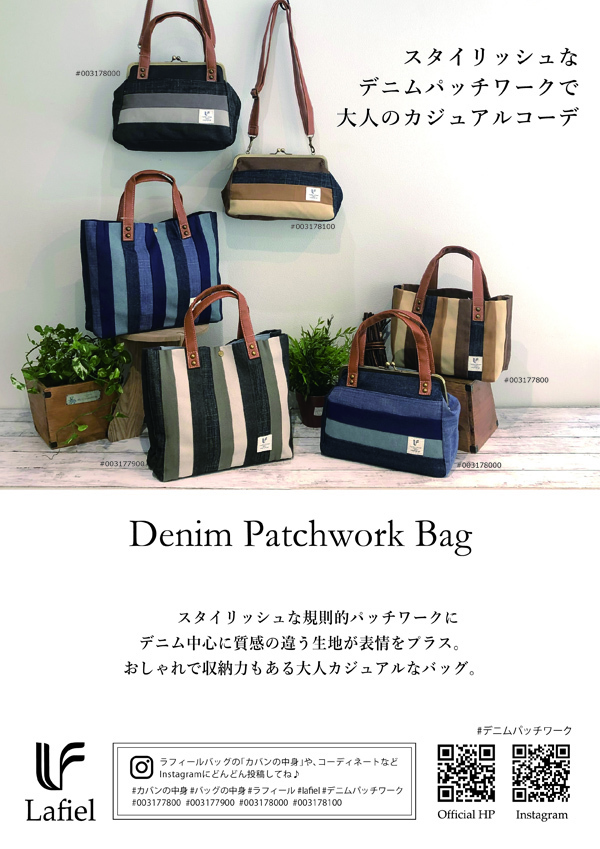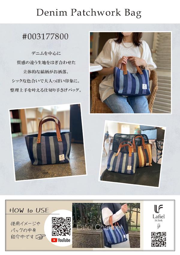 デニムパッチワーク 舟型仕切り手提げ 全3カラー