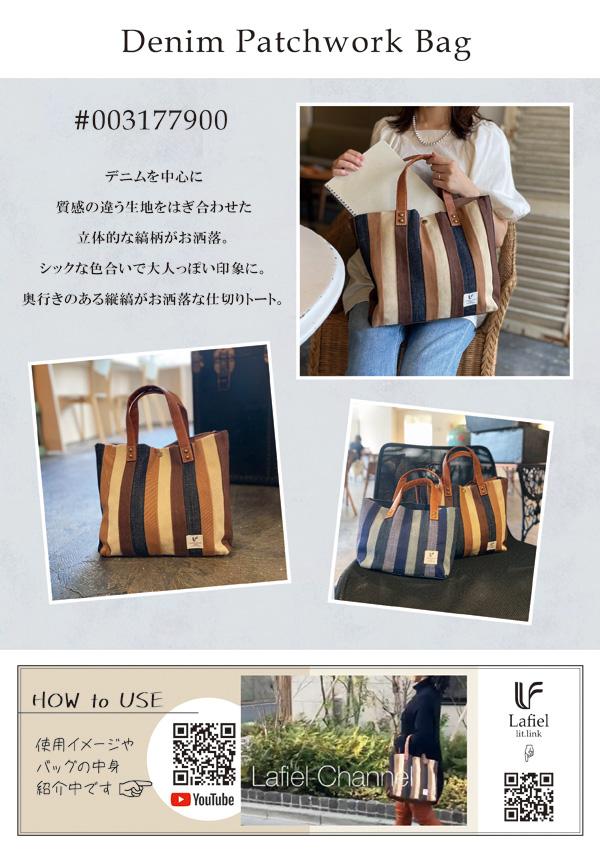 デニムパッチワーク 舟型仕切りトート 全3カラー