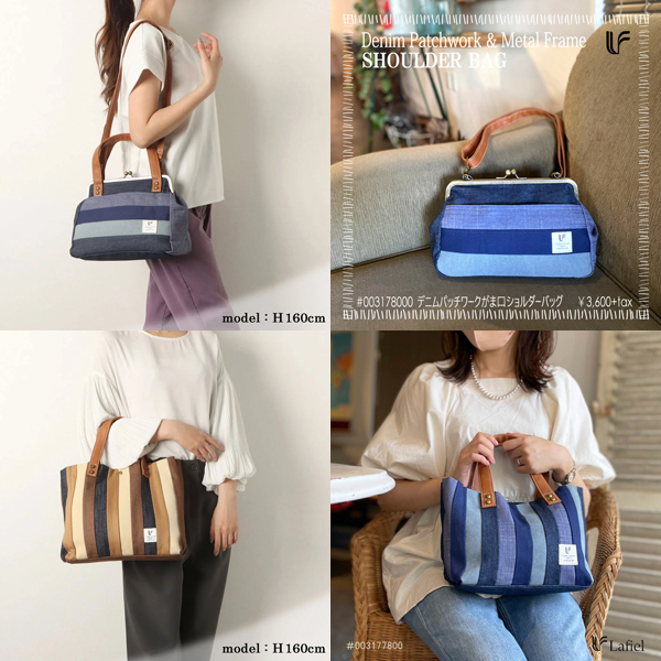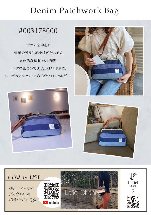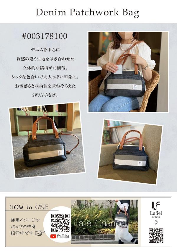 デニムパッチワーク がま口2WAY手提げ 全3カラー