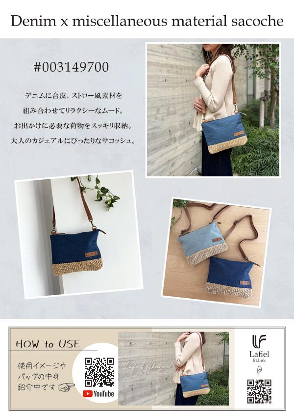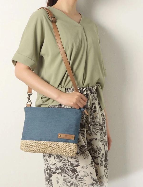 デニムに合皮、ストロー風素材を組み合わせてリラクシーなムード。