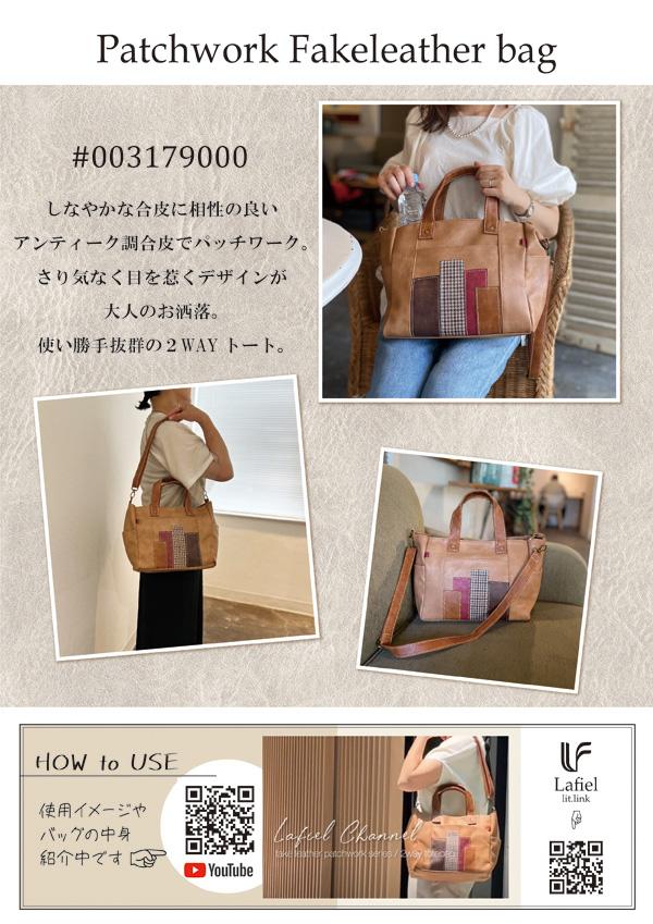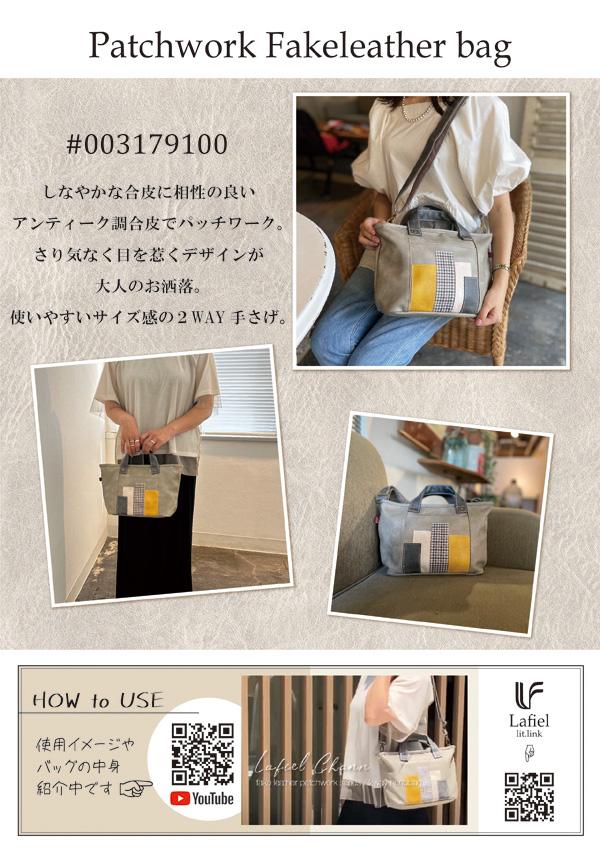 合皮パッチワーク手提げバッグ2WAY全3カラー