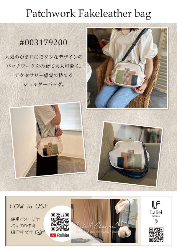 合皮パッチワークがま口 ショルダーバッグ全3カラー