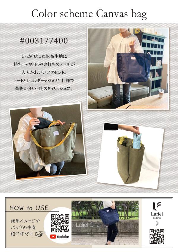 帆布配色 舟型トートバッグ 2WAY 全3カラー