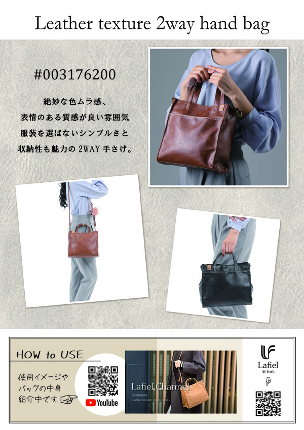本革風合皮2WAY手提げバッグ内側仕切り全3カラー