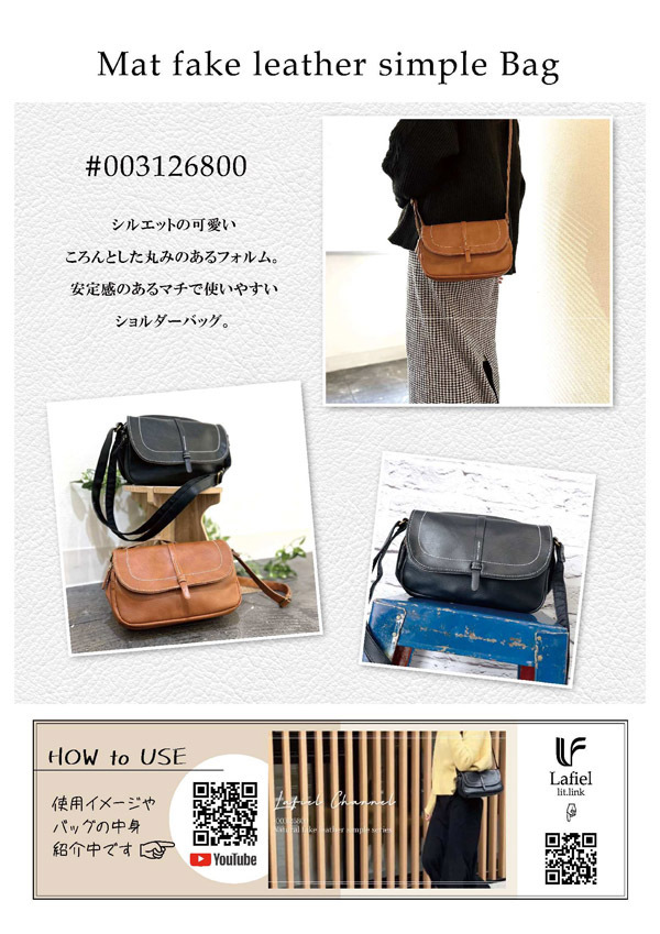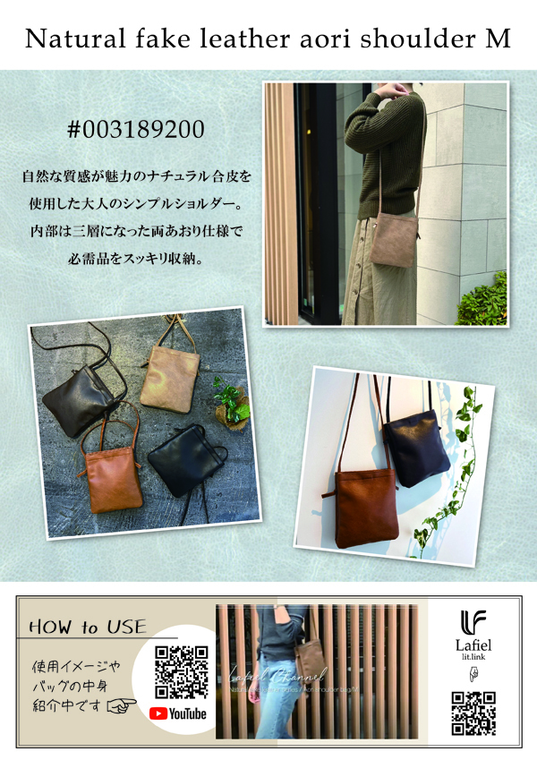 ナチュラル合皮 あおりショルダーバッグM 全4カラー
