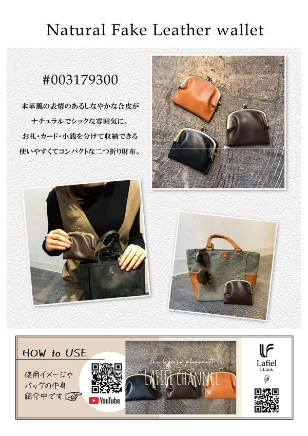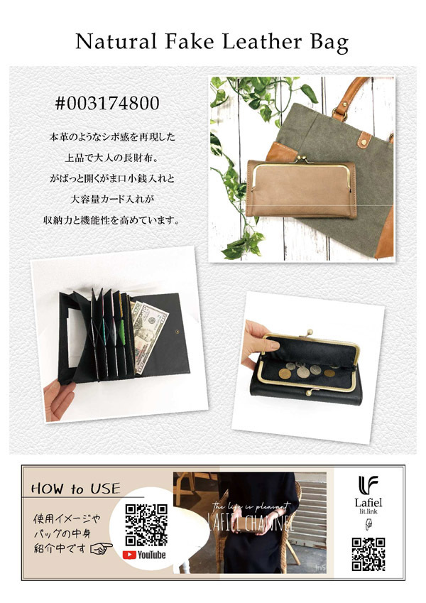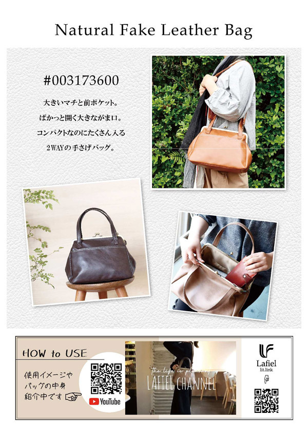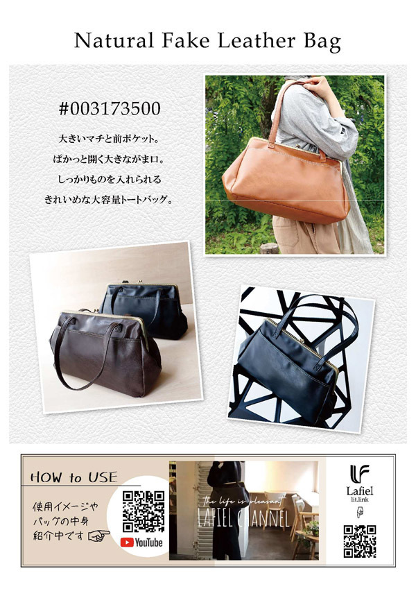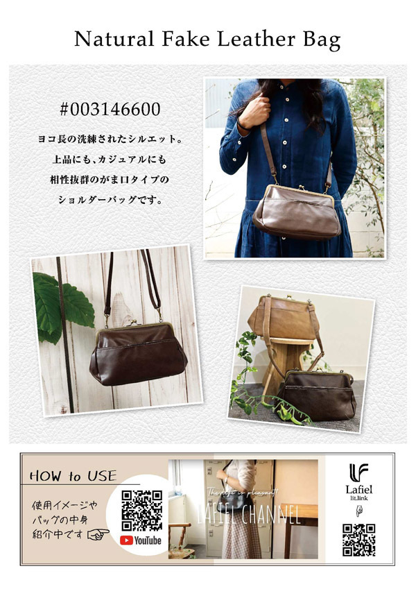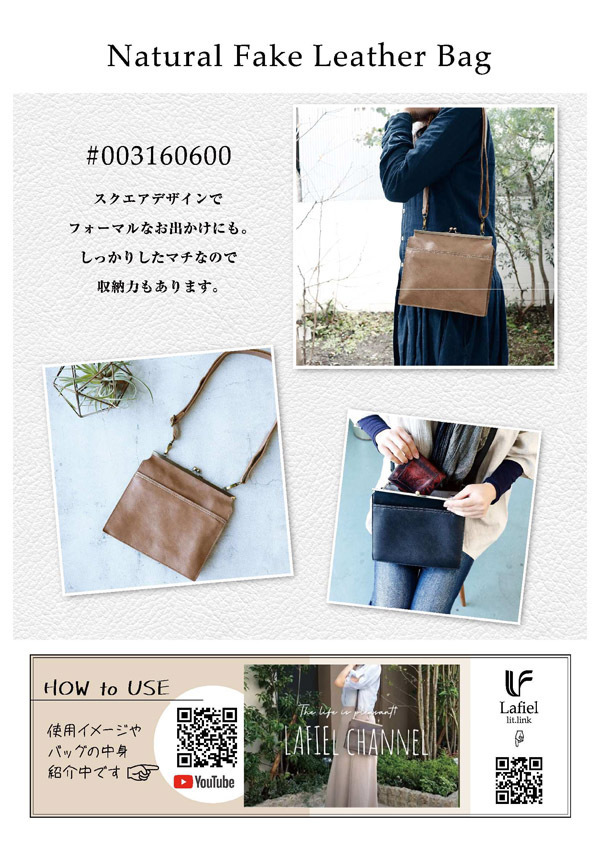 ナチュラル合皮 ワイヤーショルダーバッグL 全4カラー