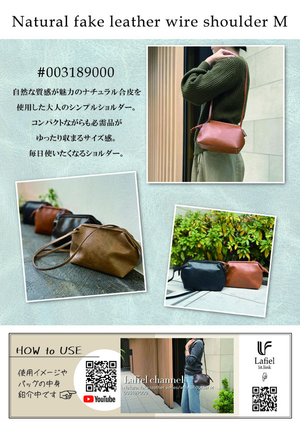 ナチュラル合皮 ワイヤーショルダーバッグM 全4カラー