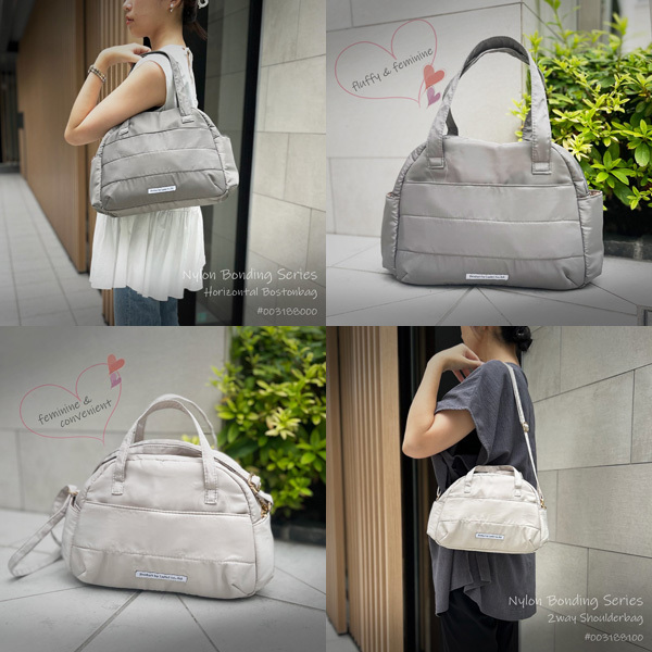 ふんわり加工のナイロン生地を柔らかなフォルムに仕立てて女性らしく。