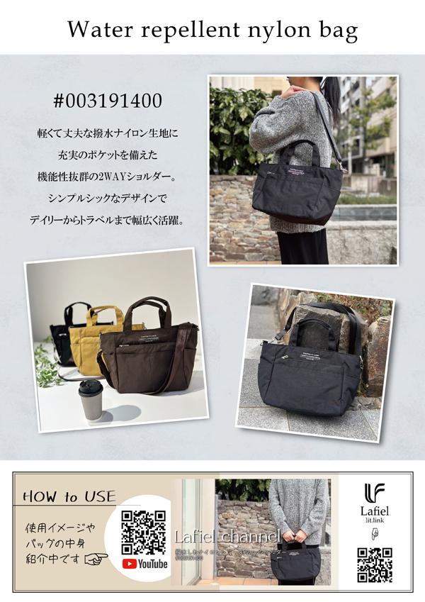 ツルっと張り感のあるナイロンツイル素材を使用した軽量バッグ。