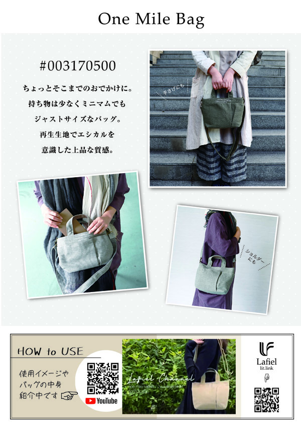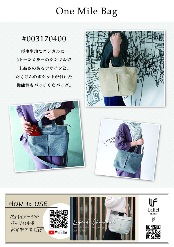 ワンマイルシリーズ 再生帆布 手提げバッグ 2WAY 全4カラー