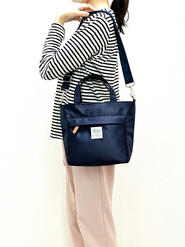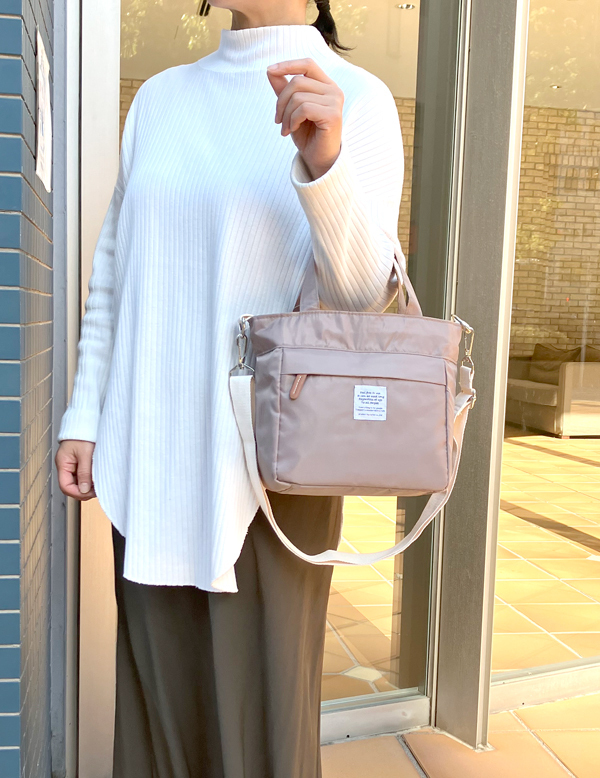 ツルっと張り感のあるナイロンツイル素材を使用した軽量バッグ。