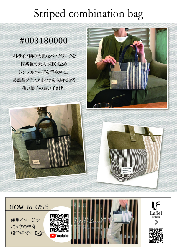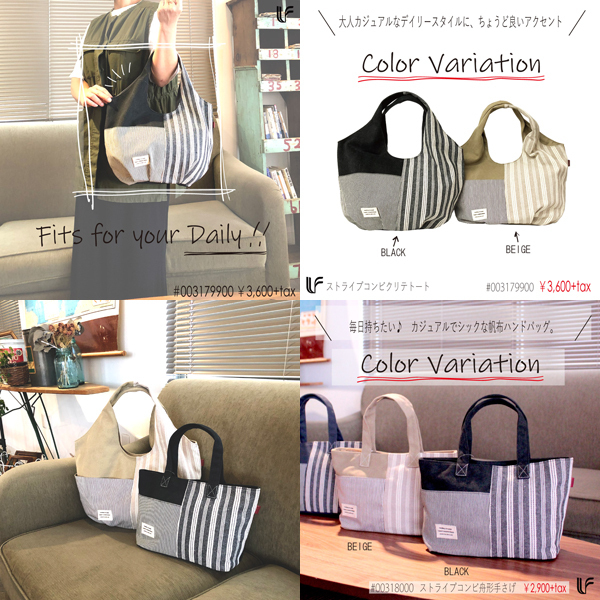 ストライプコンビ 綿 クリテトートバッグ 全2カラー