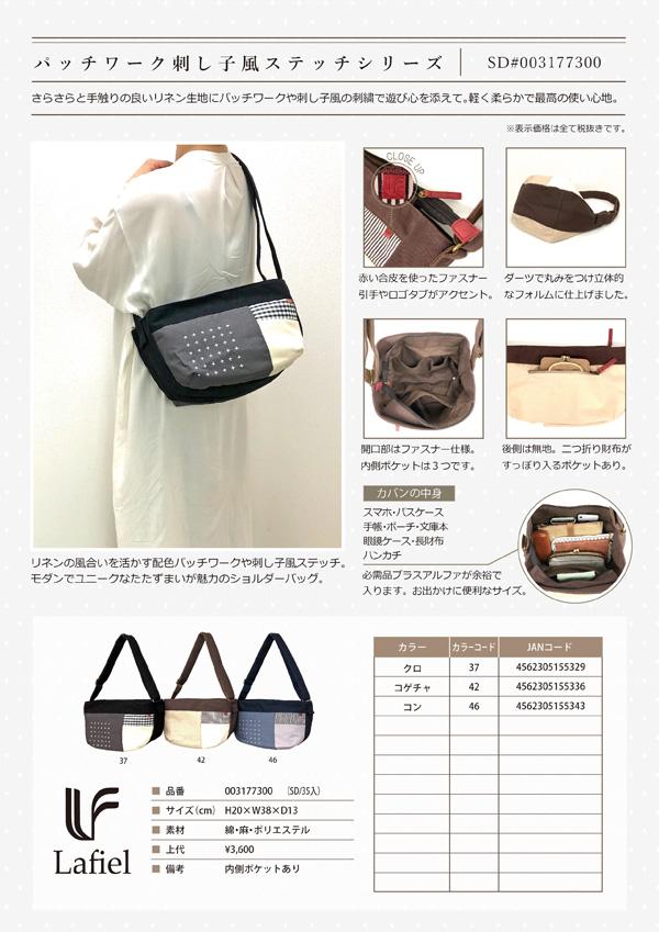 パッチワーク刺し子風ステッチ 綿 ショルダーバッグ 全3カラー