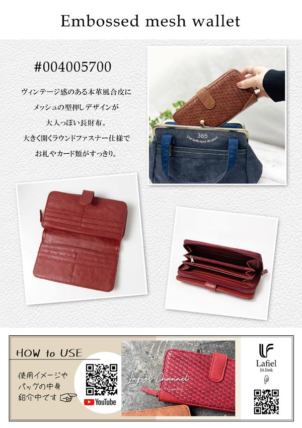 型押しやシボ感で表情のある合皮を使ったキレイめなデザインの財布、小物。