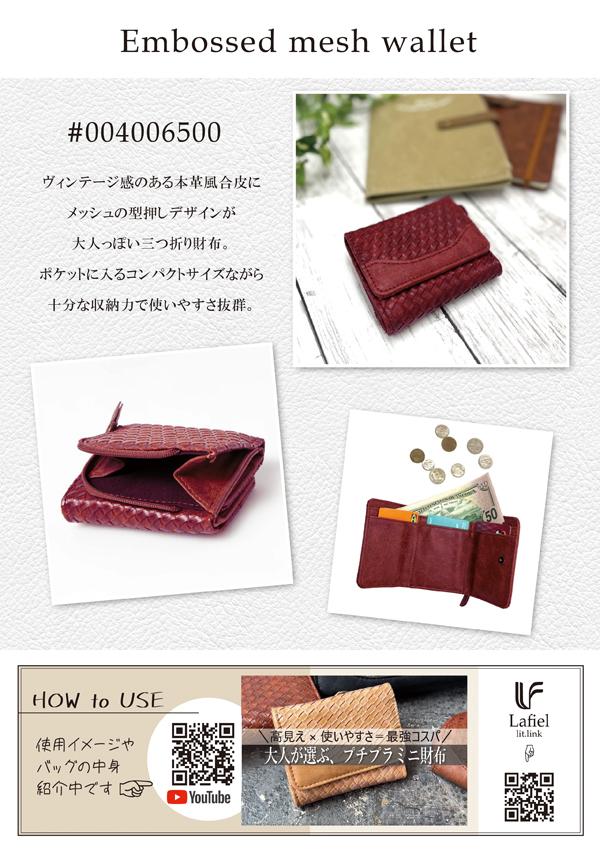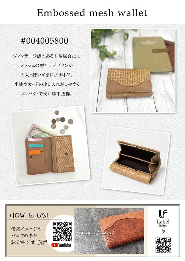 型押しメッシュ 合皮 がま口 折財布 全3カラー