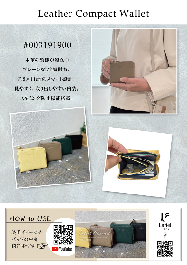 本革スキミング防止ミニ財布 全4カラー